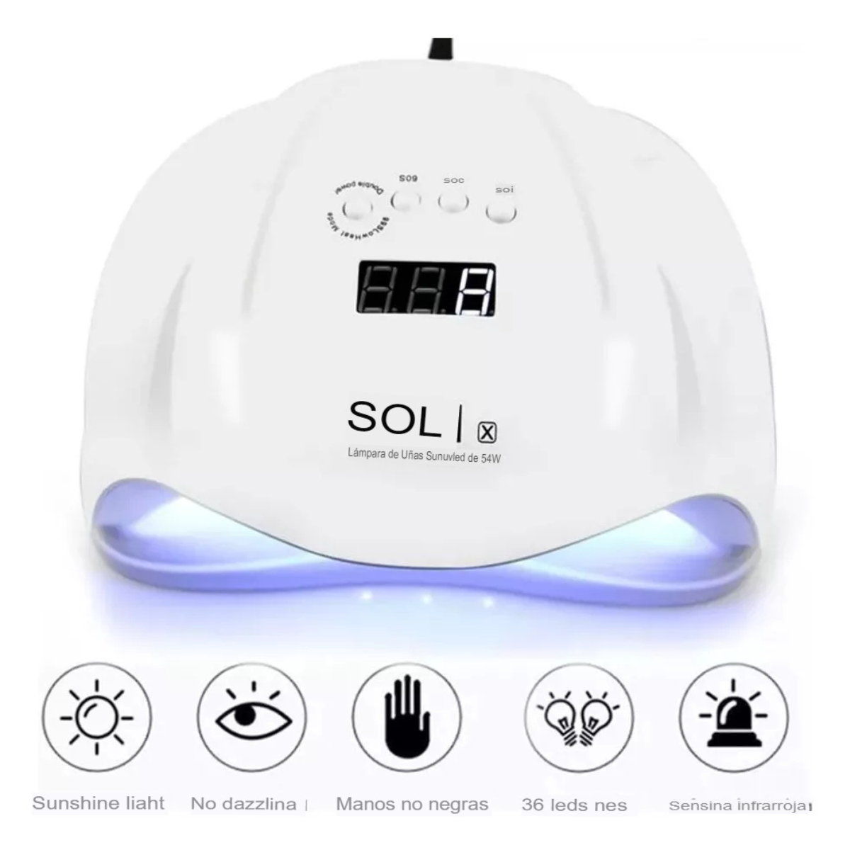 Secado ultra rápido: 24 luces LED UV de alto rendimiento que endurecen geles en tiempo record.  * Resultados profesionales en casa: Ideal para esmalta en gel, geles constructores, base y top coat.  100% segura: ProtecciĂłn contra sobrecalentamiento y quemadura. Uso cĂłmodo y confiable.  Control total: Temporizador ajustable (10, 30, 60 seg) y modo de baja temperatura de 99 seg para un secado suave.  Funciones inteligentes: Pantalla con cuenta regresiva y cronĂłmetro integrado para máxima precisiĂłn.  * Diseño elegante y minimalista: Complementa tu rincĂłn de belleza con estilo.Â